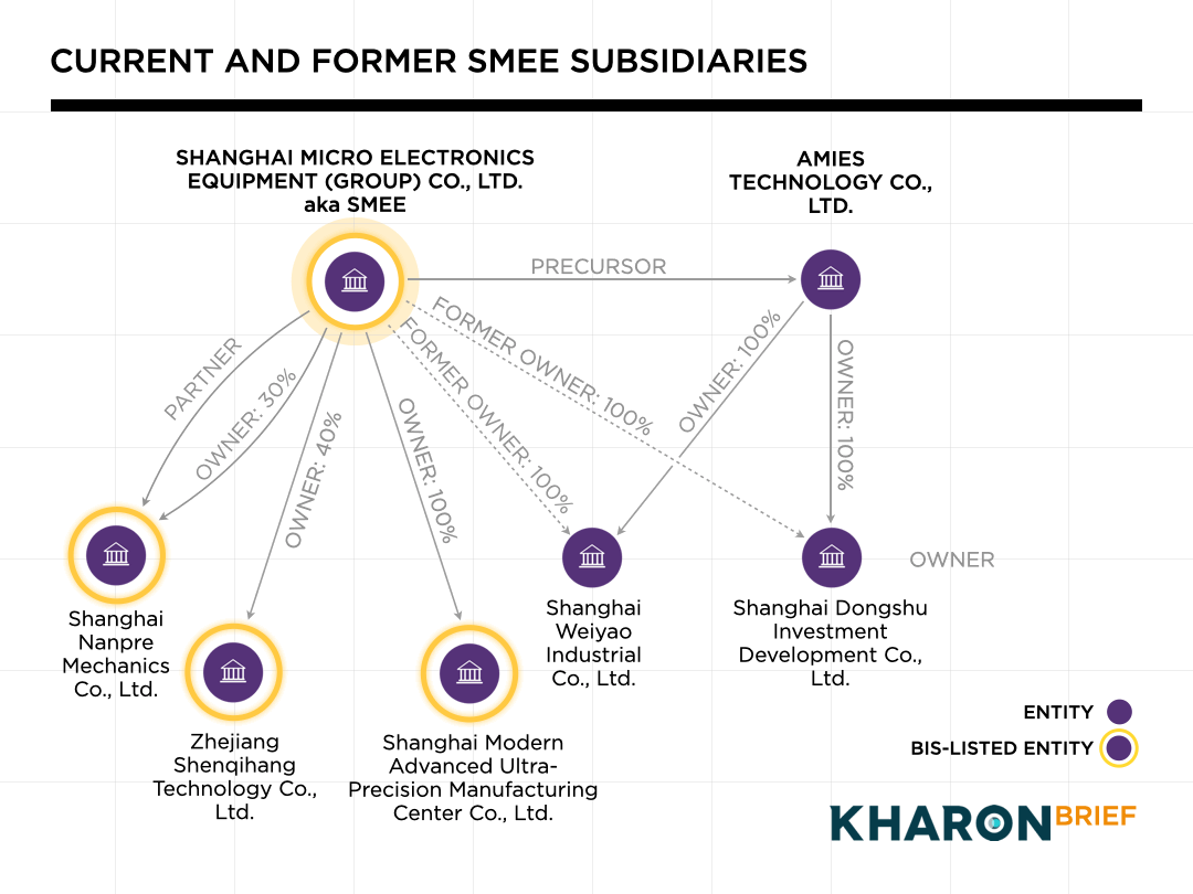 The U.S. had added SMEE to its Entity List in 2022, subjecting it to heightened export controls over its efforts to acquire U.S.-origin tech “in support of China’s military modernization.” Then, after its business appeared to stall, SMEE last year spun off a new lithography company, AMIES Technology, that was not subject to those same export controls—and that rapidly acquired thousands of SMEE’s patents and two of its subsidiaries, records reviewed by Kharon show.