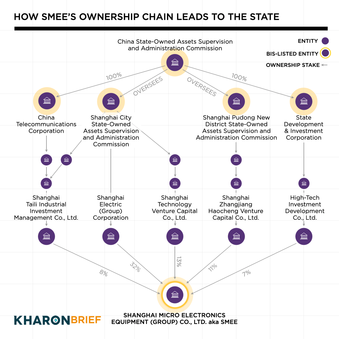 AMIES Technology, which is based in Shanghai like SMEE, was founded in February 2025. A report by China’s STAR Market Daily later quoted an AMIES employee who said its “core personnel and technical assets came from Shanghai Microelectronics Group.” The company was spun off from SMEE as an independent entity “targeting fast-to-market equipment,” the employee said.- But the companies’ upstreams are linked. According to Chinese corporate records, SMEE and AMIES share two direct minority owners, as well as a number of common state-owned or -controlled parents higher up their ownership chains. They share board members as a result.